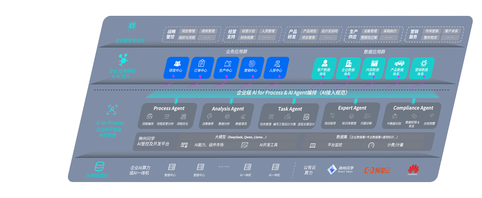 z6尊龙问学智车解决方案是一套基于AI技术的汽车行业智能化系统,,,覆盖从底层算力到顶层AI应用的全栈方案。。。方案由算力层、、、模型层和应用层组成:算力层,,,方案支持多种一体机配置,,具备云端灵活部署、、、、多云适配以及动态优化计算资源的能力;模型层,,,,z6尊龙问学平台版提供了企业级AI应用一站式构建与管理平台,,,支持基于后训练强化技术的汽车企业专属模型的训练、、评测和运营;应用层,,,z6尊龙问学DeepSeek版提供包括超级员工、、、、智能招采、、智能营销、、智能客服、、、、AI for BI等一系列解决方案,,可助力汽车行业实现数字化转型,,让管理更智能、、、响应更敏捷。。。。